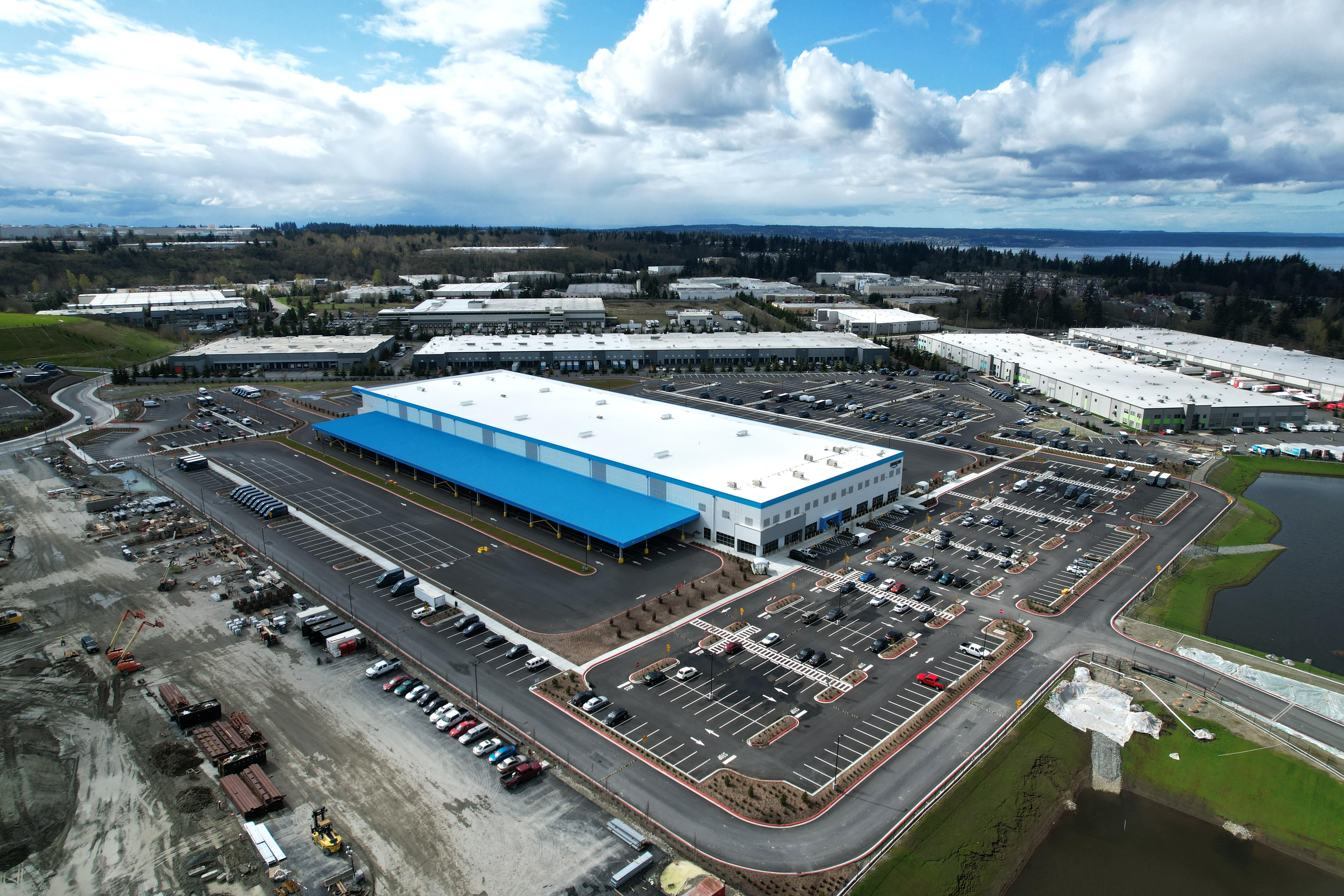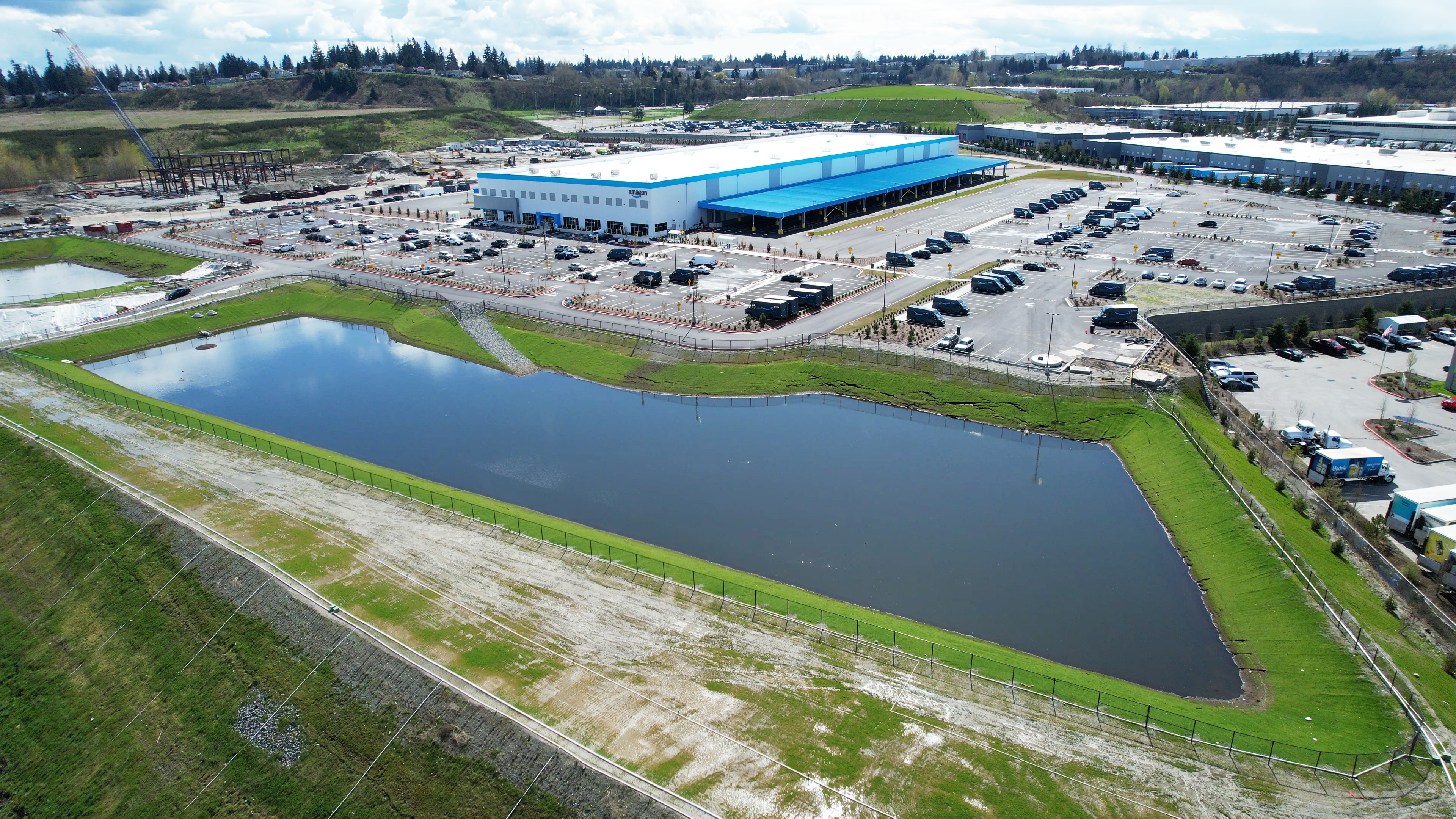 Barghausen partnered with Dermody Properties for the development of the 145,125 sf build-to-suit warehouse. The warehouse sits on 15 aces and offers two 50,000 sf pickup canopies, high speed grade-level doors and dock-high loading positions. Our team prepared plans for demolition, TESC, utilities, stormwater facilities and pumps, grading and paving, along with vehicle maneuvering diagrams. This project required six full access driveways and a road extension on Shuksan Way. The stormwater plans required three detention ponds with lift stations. Our survey team completed ALTA, as-built, office, topographic and downstream surveys throughout the project.